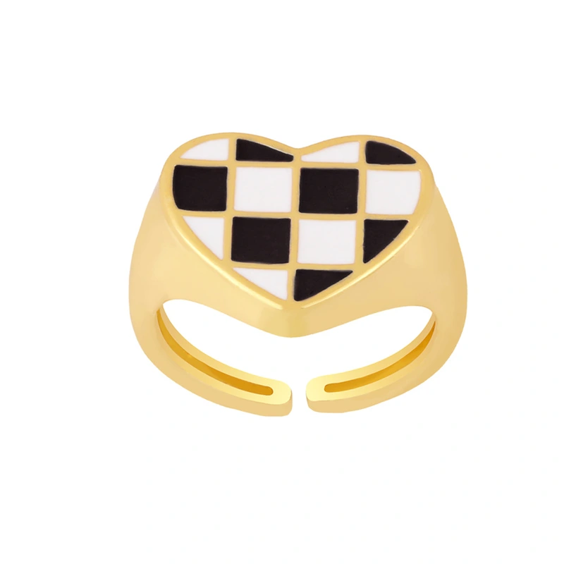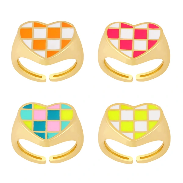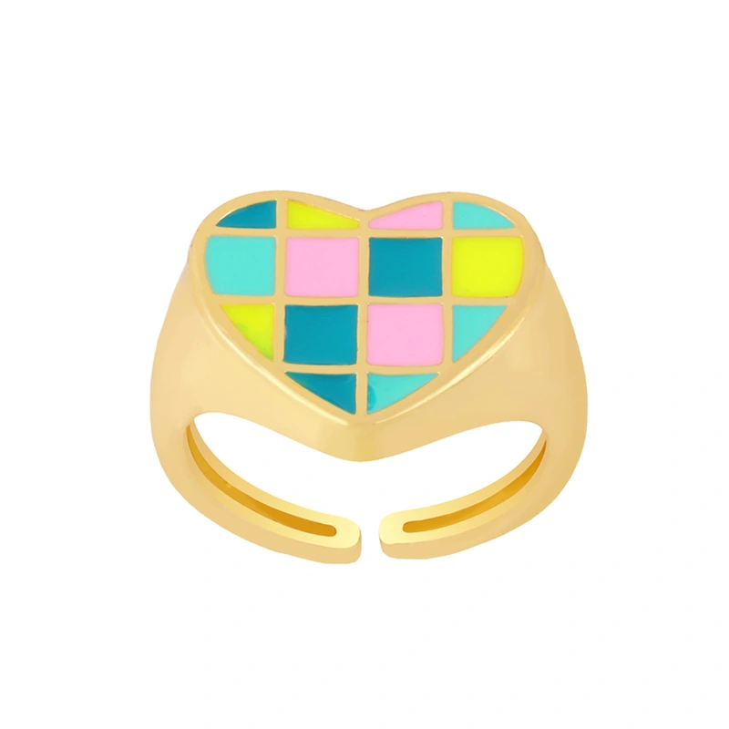 تصفية أزياء نمط الرجعية مربع خاتم الحب شخصية بسيطة مطابقة اللون خاتم مفتوح rin49 الإبداعية