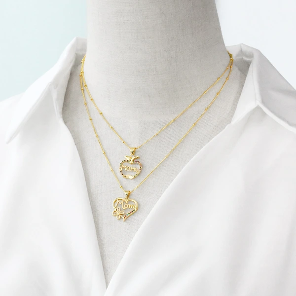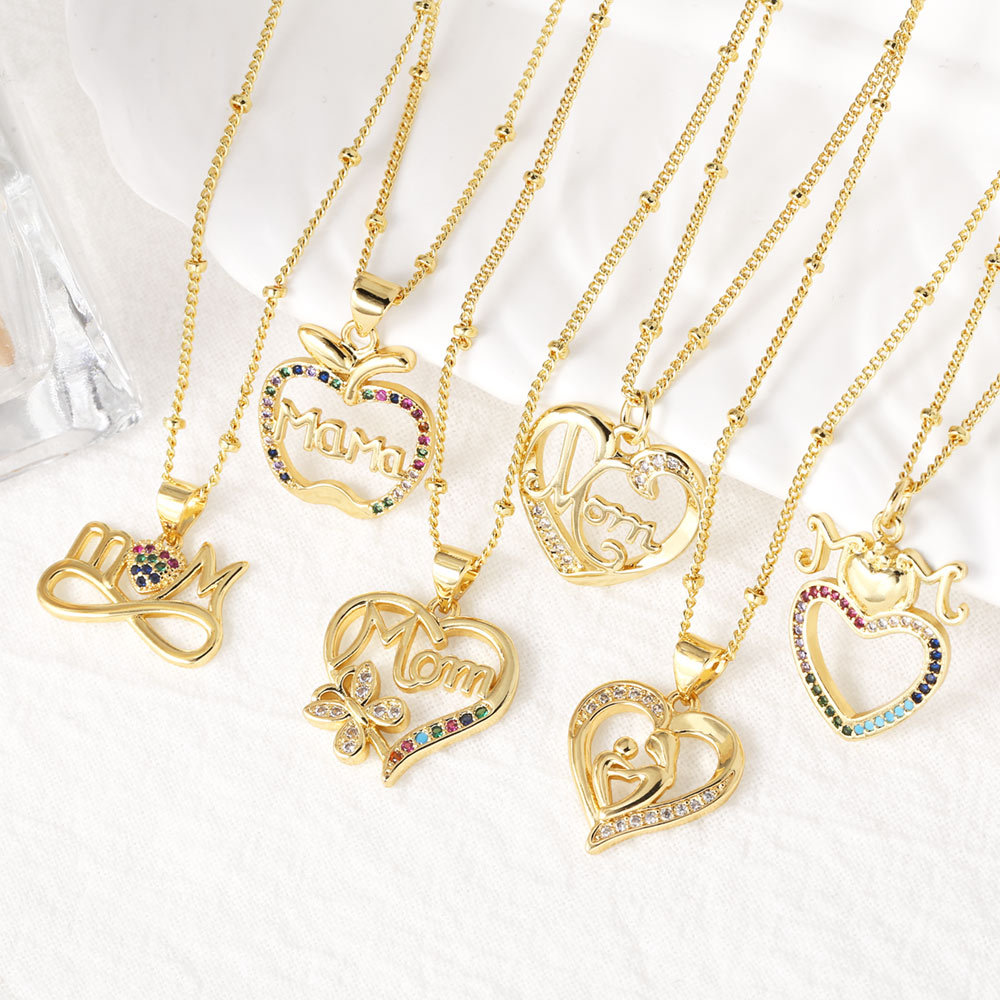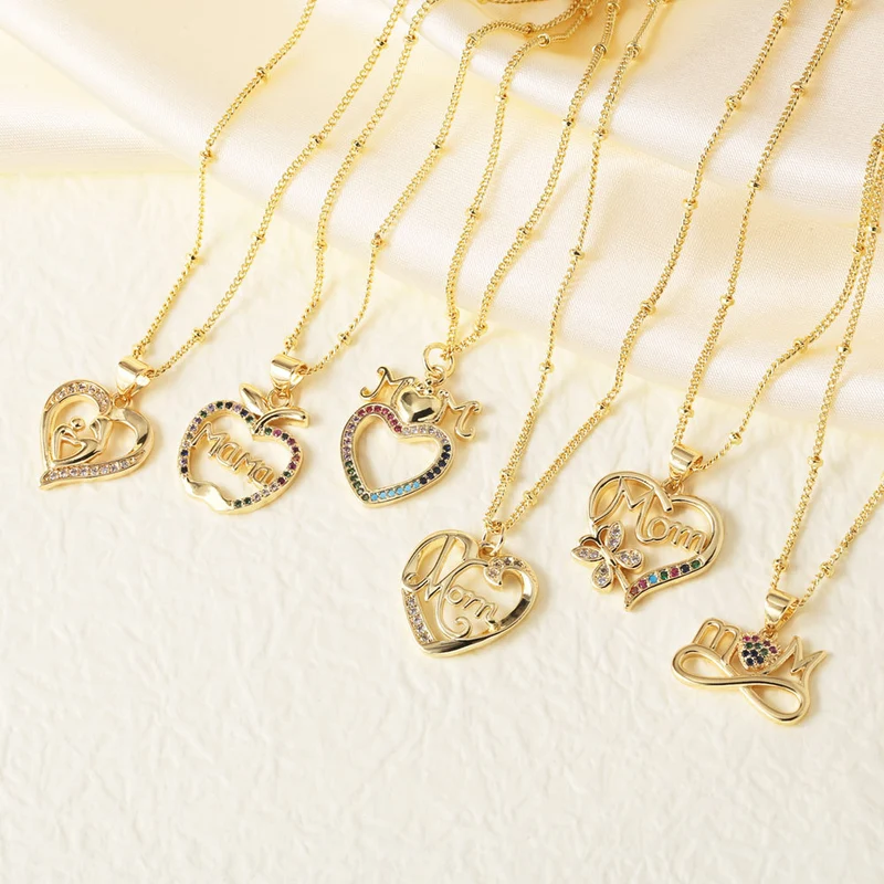 تصفية أوروبا والولايات المتحدة الأكثر مبيعاً قلادة عيد الأم الزركون الملونة الحب قلادة الترقوة سلسلة nkn76