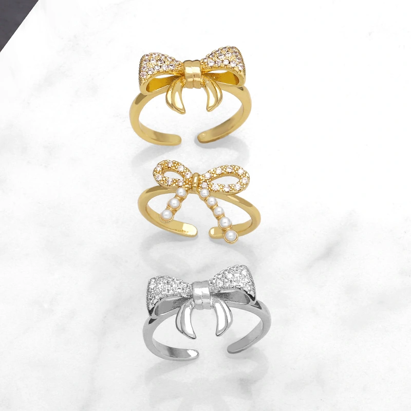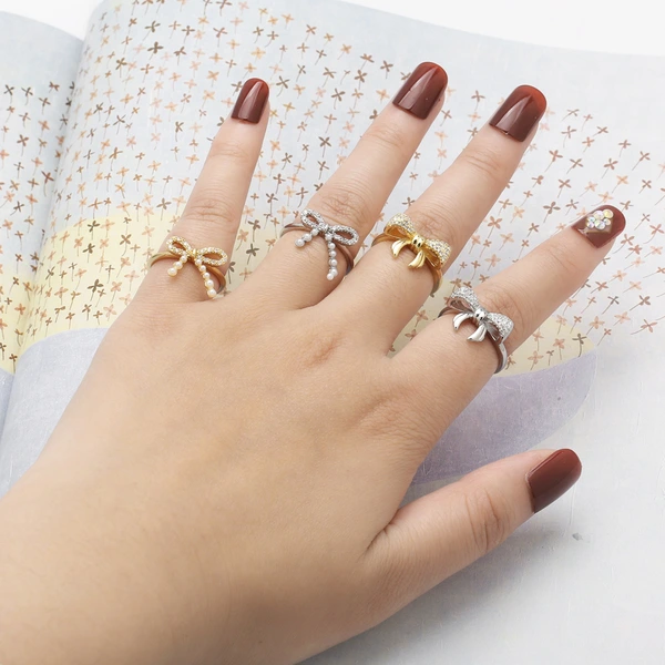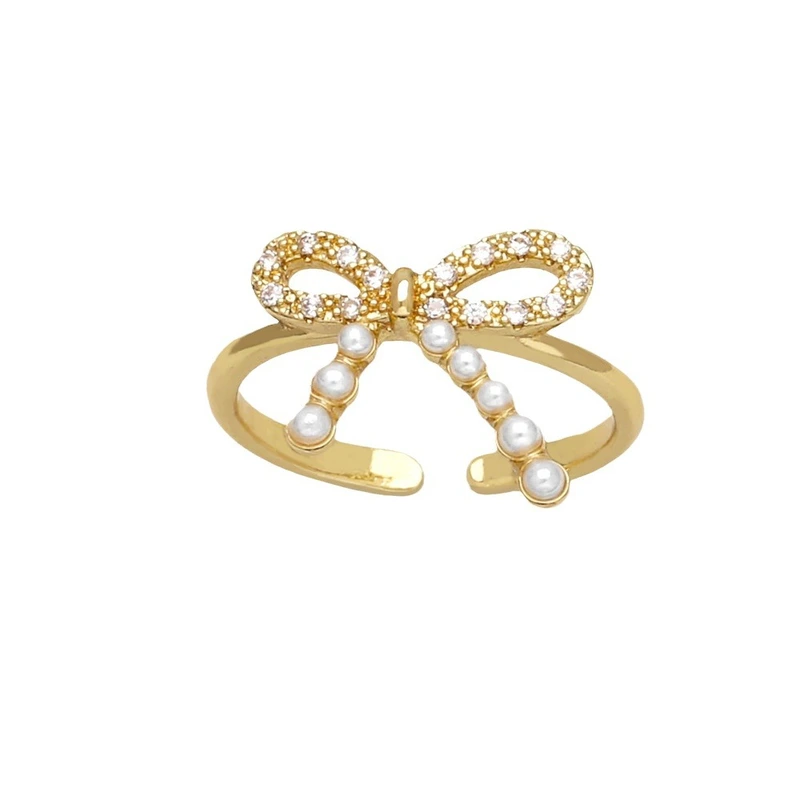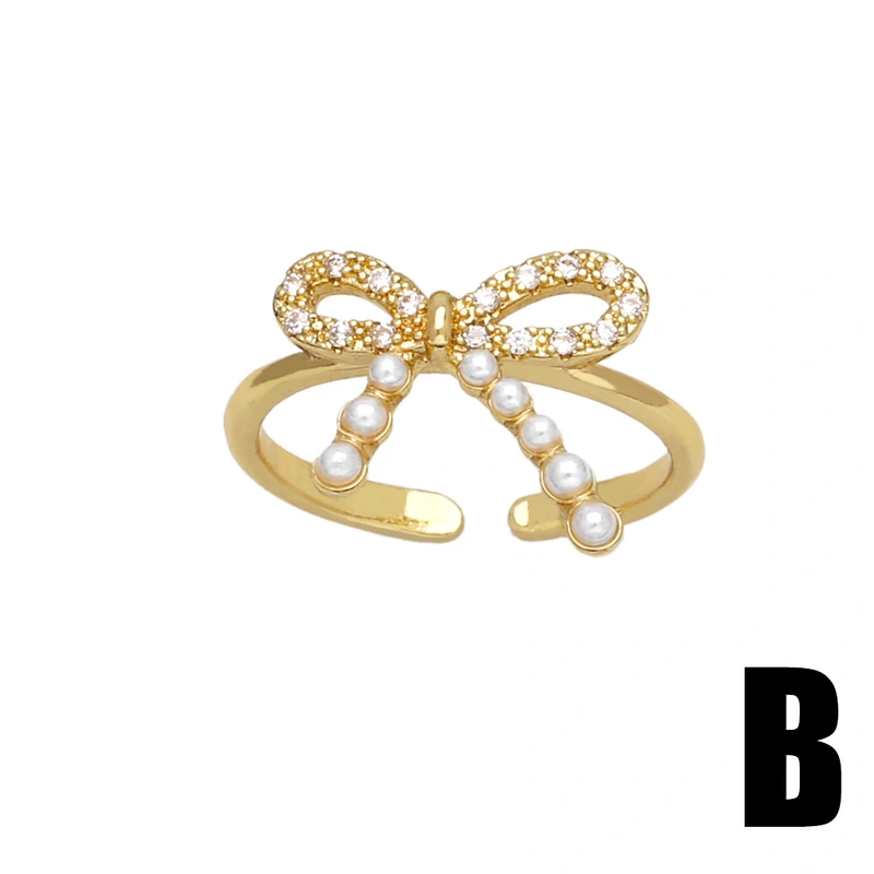 تصفية أوروبا والولايات المتحدة بيع الساخنة خاتم القوس المرأة الخفيفة الفاخرة مطعمة الزركون مطلية بالذهب خاتم اللؤلؤ rin01