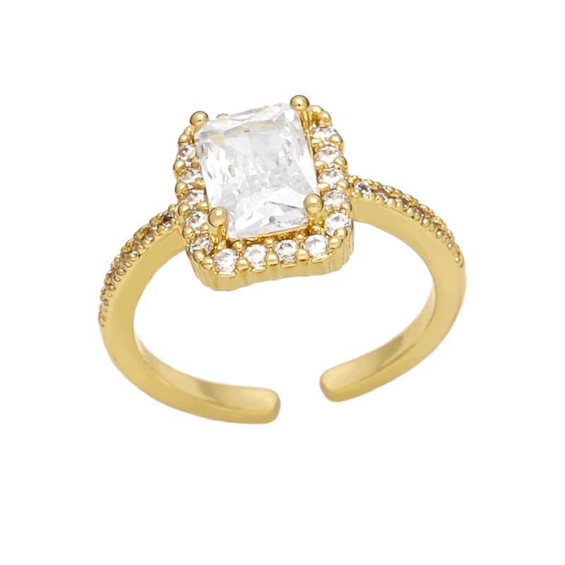 تصفية الأوروبية والأمريكية الأكثر مبيعا خاتم الزركون المربع ضوء خاتم فاخر مزاجه الإناث حلقة مفتوحة متعددة الاستخدامات rik61