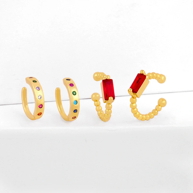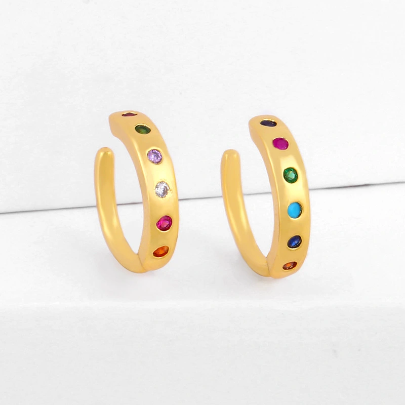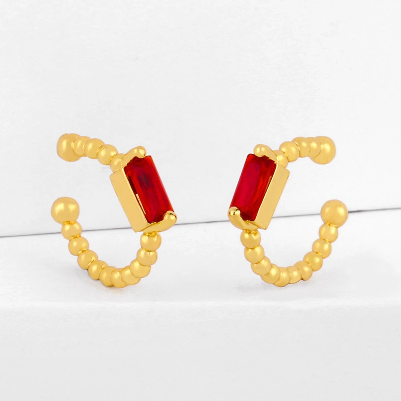 أقراط أذن أوروبية وأمريكية بسيطة من الزركون الملون بتصميم نيتش مطلية بالذهب عيار 18 قيراطًا eru52