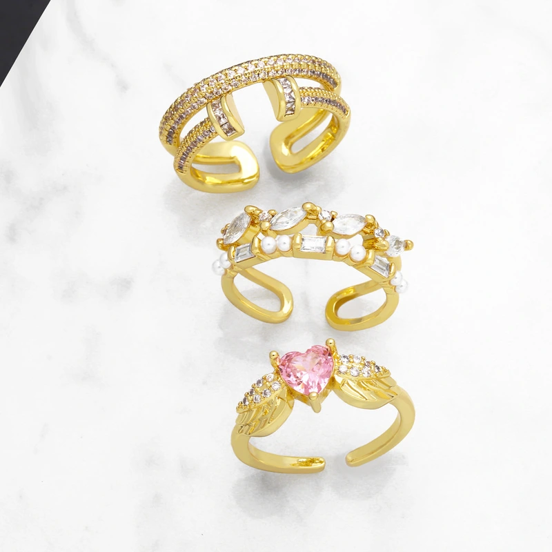 تصفية الأوروبية والأمريكية الفاخرة الخفيفة المتخصصة مزدوجة الطبقات خاتم شخصية الماس قلب أجنحة رأس الثور خاتم الإناث rij63