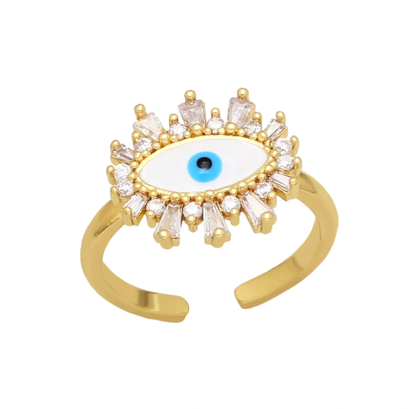 تصفية الأوروبية والأمريكية اللون قطرة زيت الزركون خاتم عين الشيطان الإناث بسيطة رمش خاتم فتح العين riq25