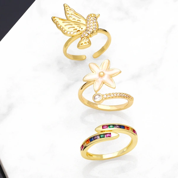 خاتم صغير فاخر فرنسي رائج البيع على شكل قطرة ماء على شكل زهرة خاصة خاتم إصبع السبابة للأميرة