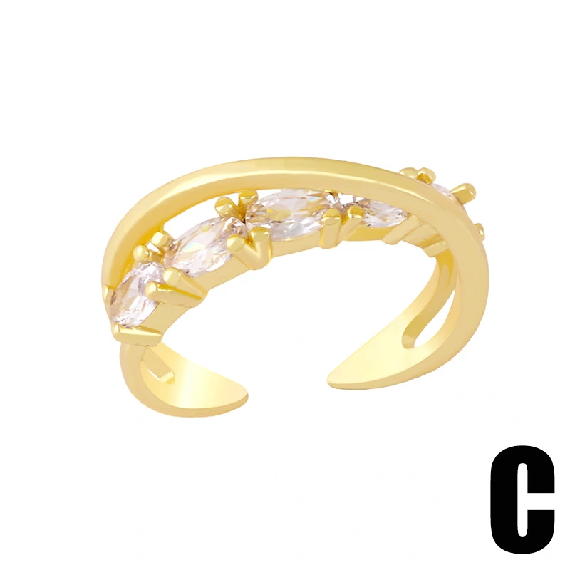 خاتم بتصميم أوروبي وأمريكي فاخر، خاتم عصري من الزركون على شكل عين الحصان، خاتم إصبع السبابة بتصميم مجوف متعدد الطبقات