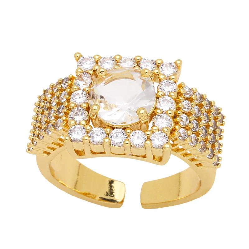 تصفية الأوروبية والأمريكية خاتم الزركون المرأة العصرية المفتوحة المتخصصة الراقية الفاخرة الخفيفة هندسية خاتم قابل للتعديل rip06