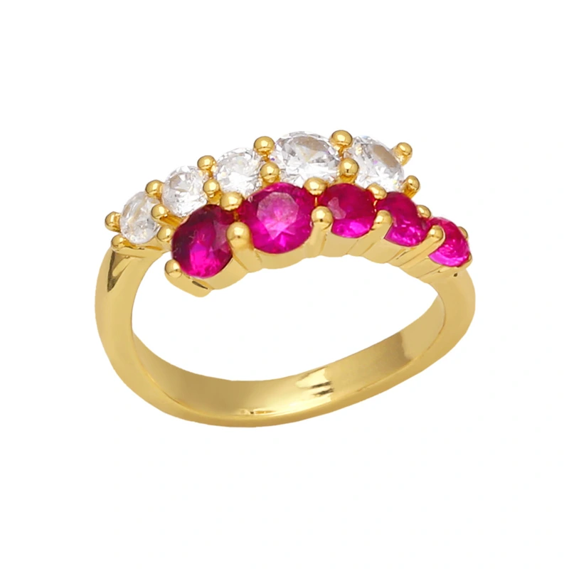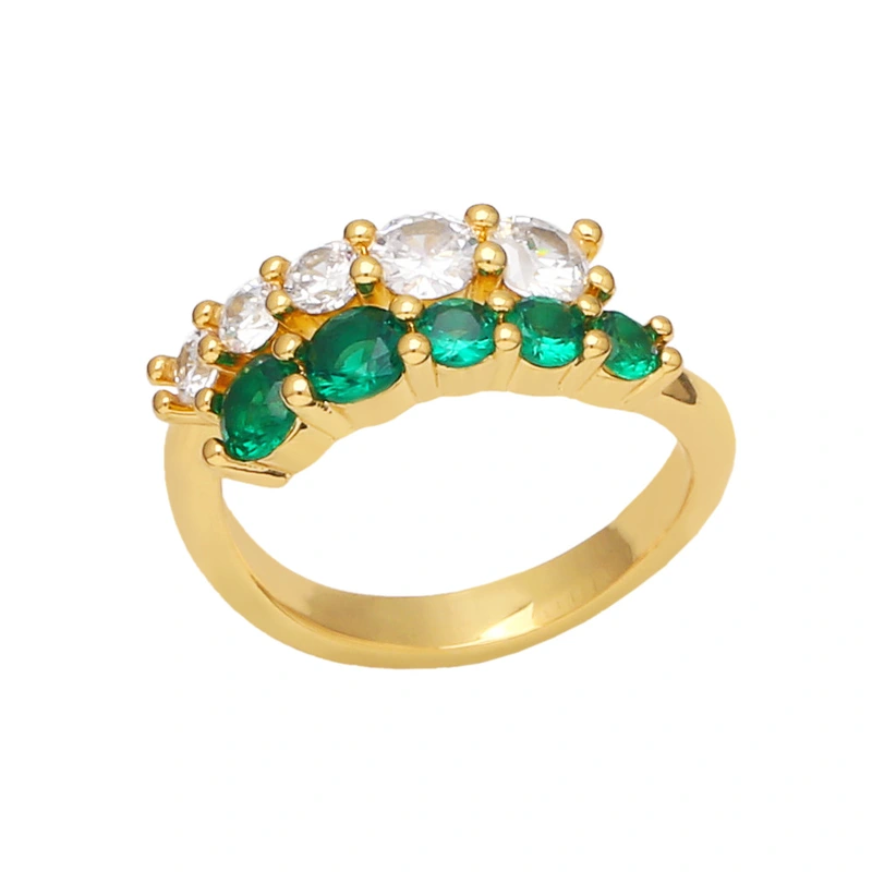 تصفية المجوهرات الزركون الملونة الساخنة بيع بالجملة النمط الأوروبي والأمريكي مطابقة اللون صف مزدوج خاتم الإناث riq03