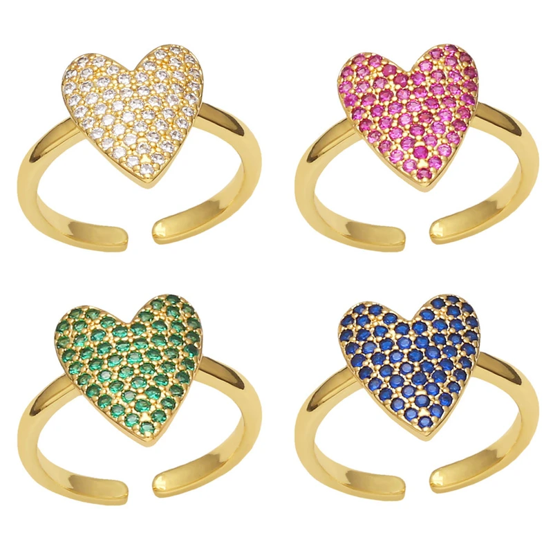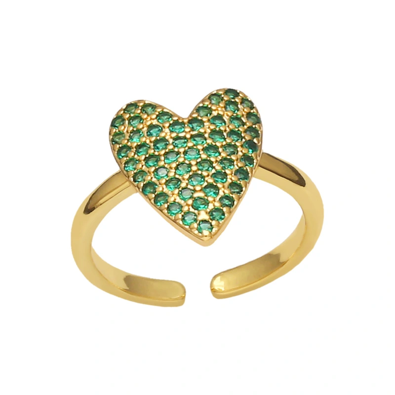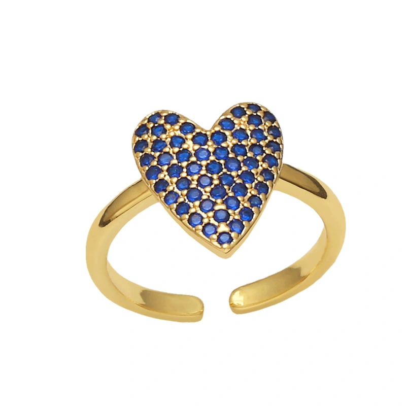تصفية المجوهرات اليدوية الأوروبية والأمريكية خاتم الحب الماس الملون تصميم مكانة الإناث خاتم قابل للتعديل على شكل قلب الإناث riq87