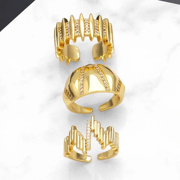 تصفية المنتجات الأوروبية والأمريكية الجديدة مطعمة خاتم الزركون الإناث المتخصصة هندسية نجمة خاتم مفتوح المجوهرات rir14
