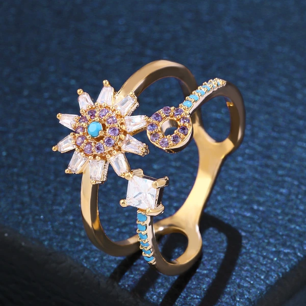 خاتم سماء مرصعة بالنجوم بتصميم نيتش نسائي، خاتم زوجين مليئ بالزركون، خاتم أنثوي عصري رائع بإصبع السبابة