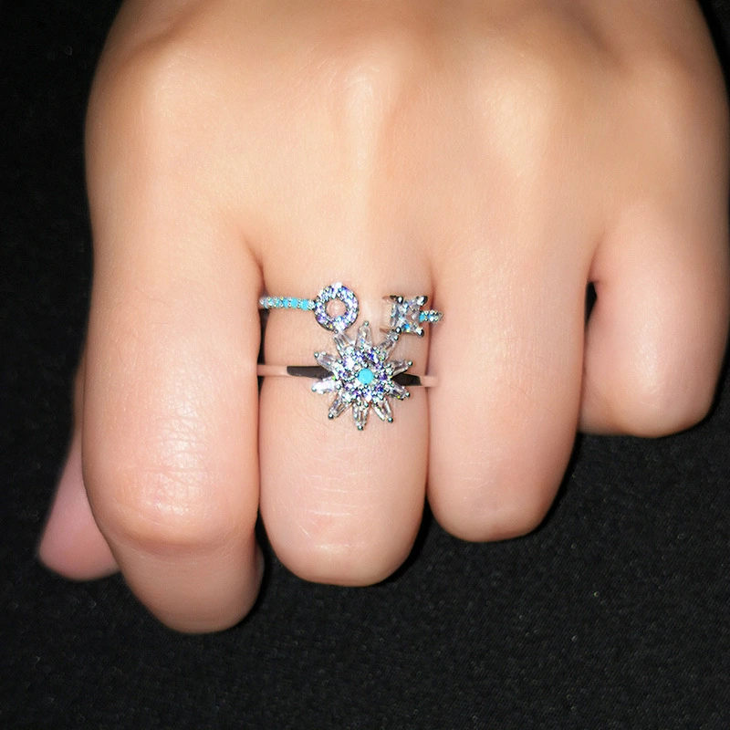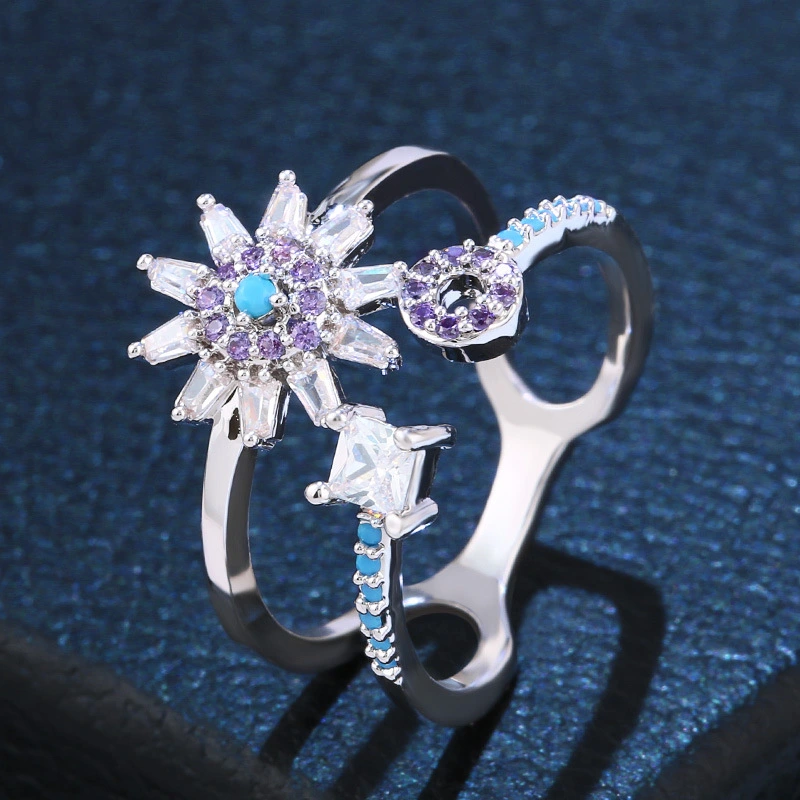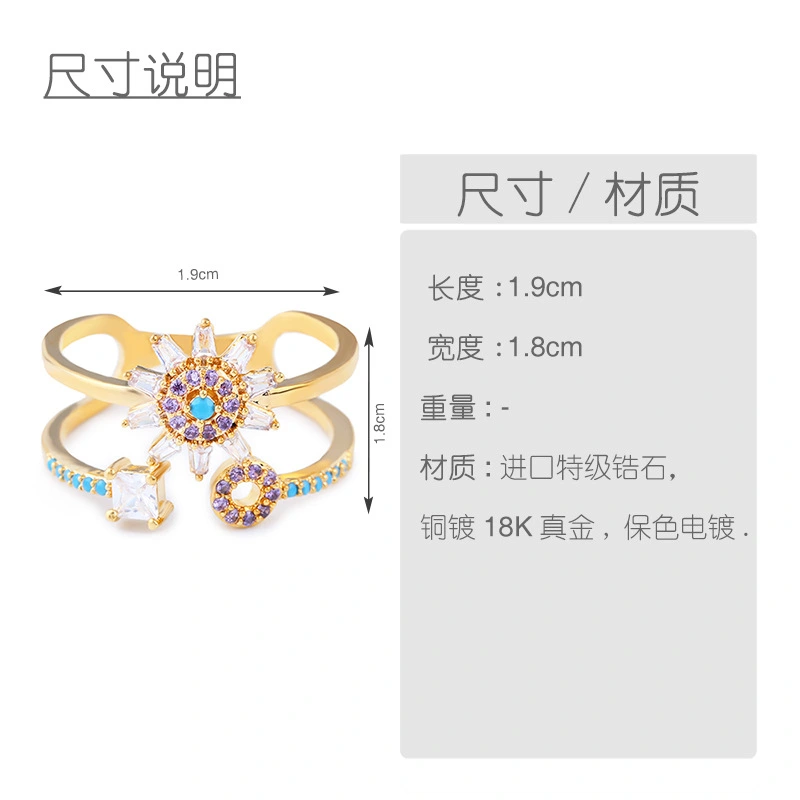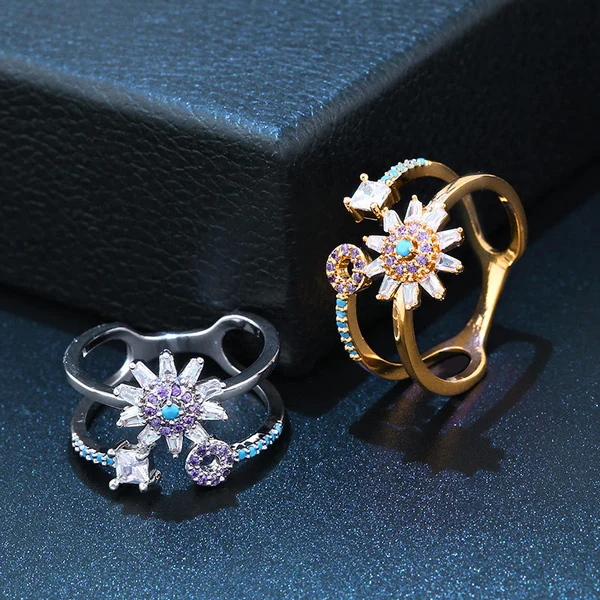 تصفية النسخة الكورية من شخصية إبداعية خاتم الزركون الأنثوي الرائع متعدد الاستخدامات خاتم زهرة مجوف مزدوج الطبقة rif75