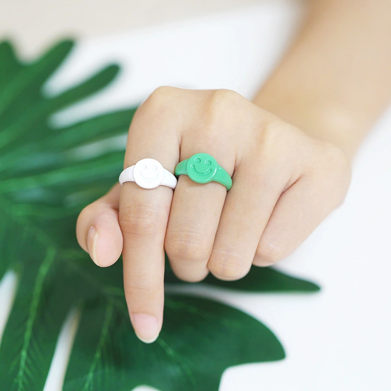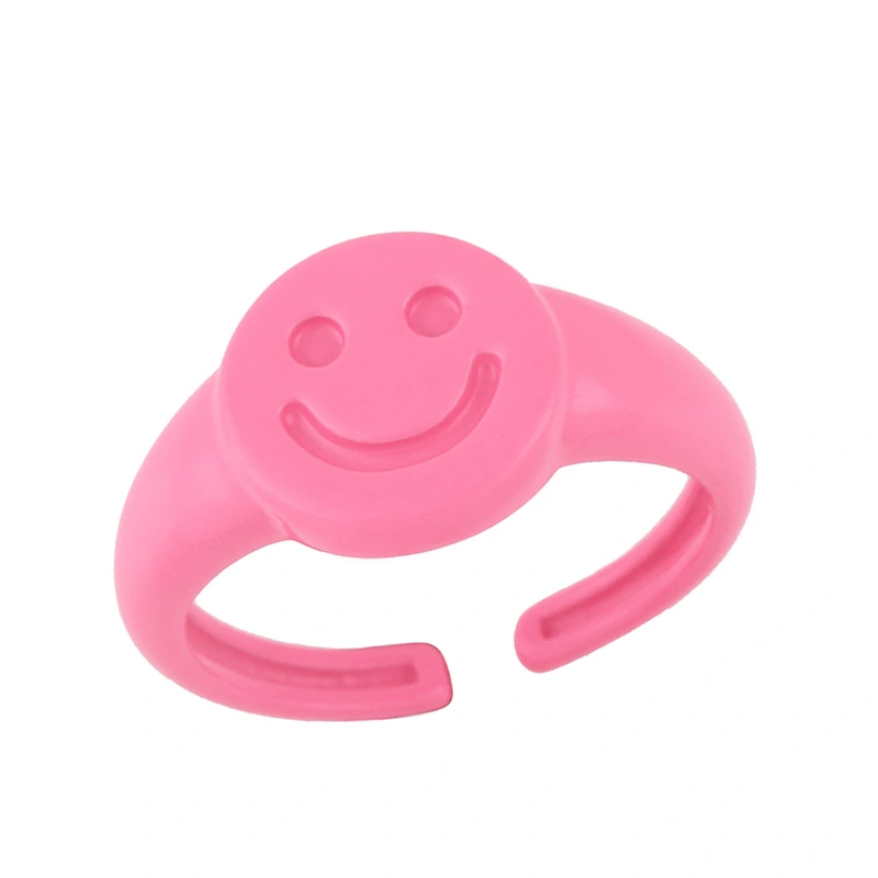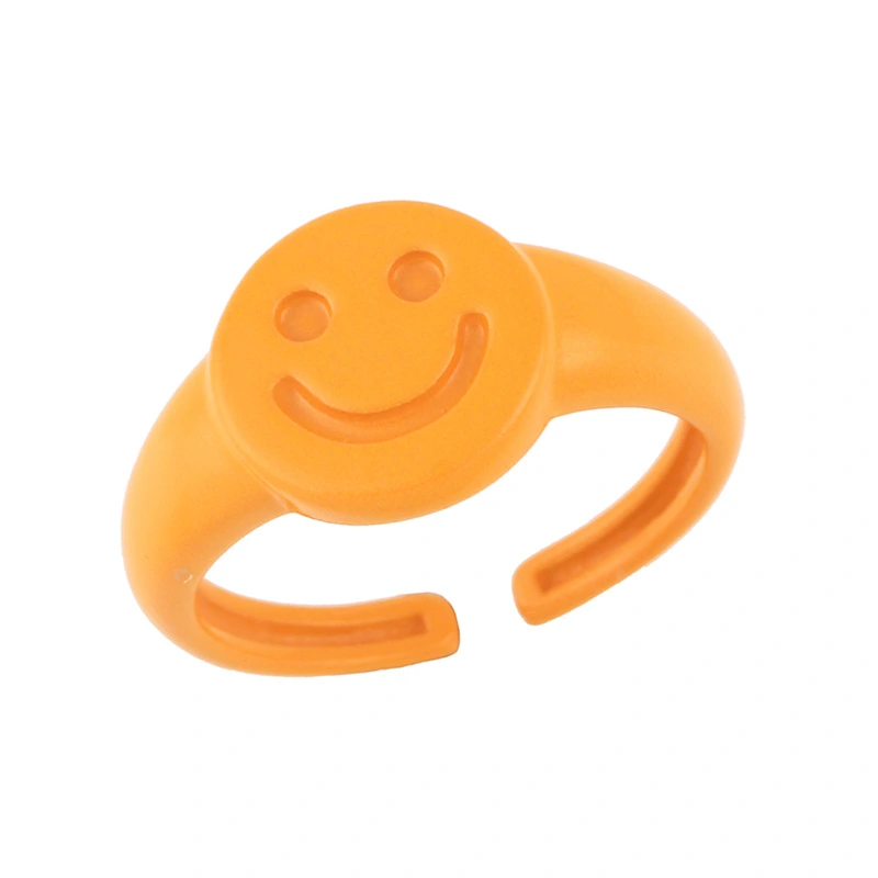 تصفية خاتم عصري أوروبي وأمريكي مطلي بالذهب على شكل قطرة زيتية مع تعبير عن ابتسامة الوجه خاتم عصري بفتحة قابلة للتعديل 43