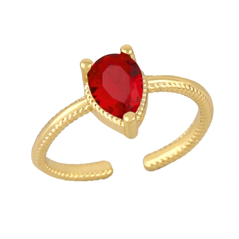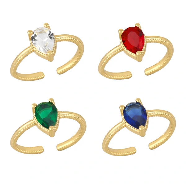 تصفية كخاتم ألماس ملون جديد للنساء على الطراز الأوروبي والأمريكي خاتم بسيط من الزركون الملون على شكل قطرة ماء riq11