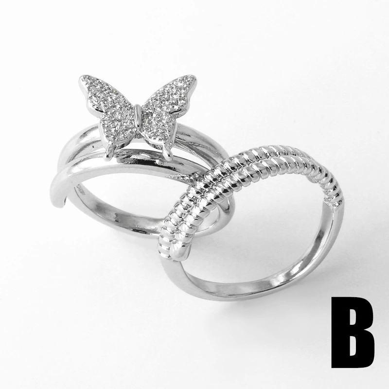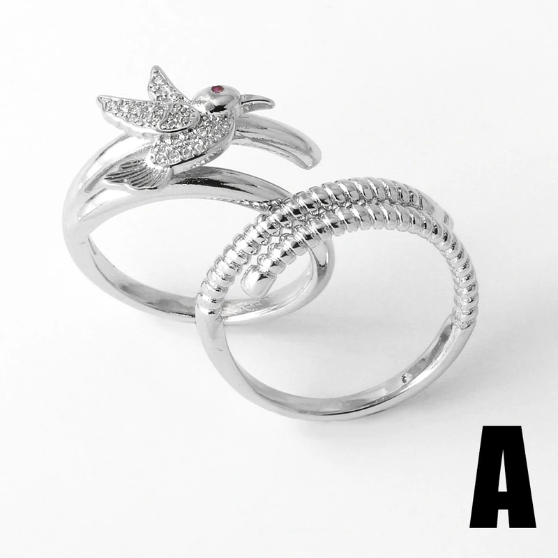 تصفية كمجوهرات خاتم حب فراشة أوروبي وأمريكي للنساء مطلي بالذهب خاتم مفتوح من الزركون على شكل طائر rij24