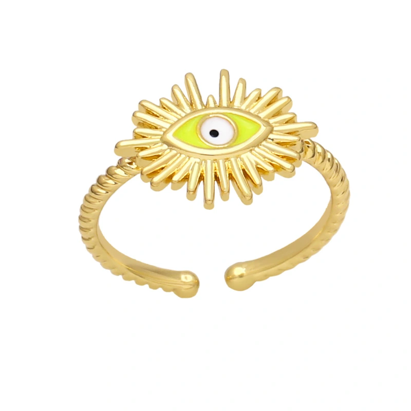 تصفية كمجوهرات خاتم عين الشيطان الأوروبي والأمريكي للنساء بفتحة قابلة للتعديل على شكل قطرة زيت زرقاء riq05