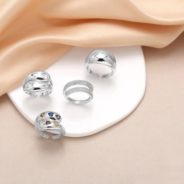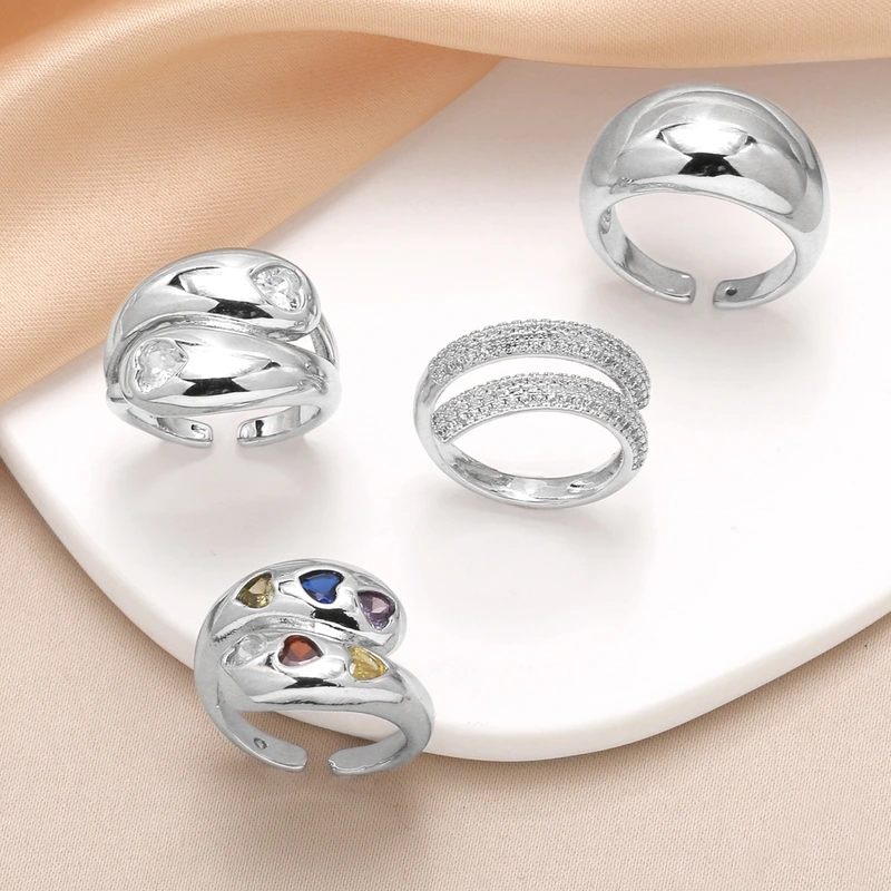 تصفية مجوهرات خاتم زركون ملون مطلي بالذهب هندسي مفتوح rim77