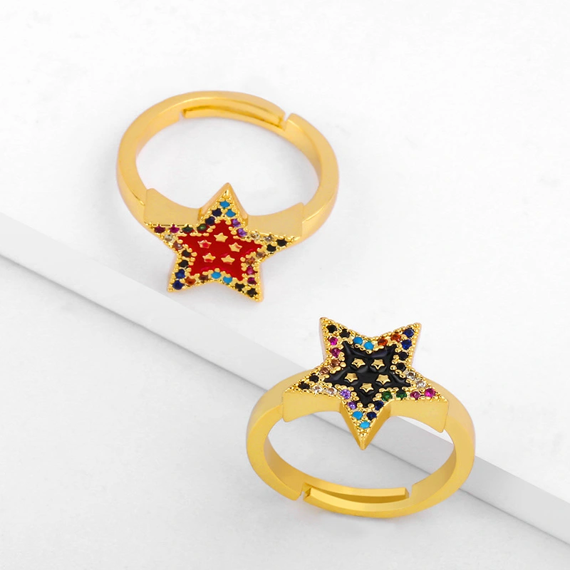 تصفية 2024 خاتم إبداعي أوروبي وأمريكية نجمة خماسية مفتوحة خاتم قطرة زيت خاتم ألماس نسائي rij30