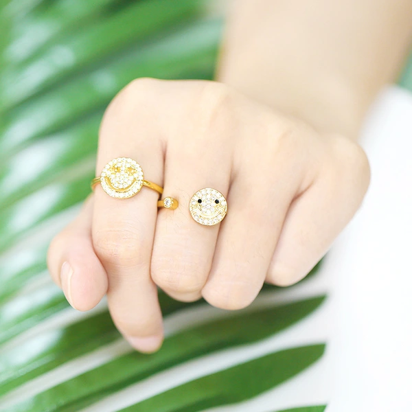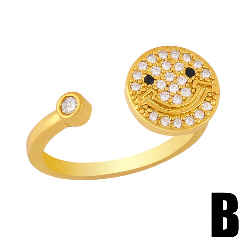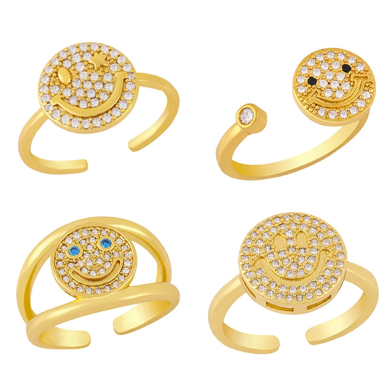 تصفية 2024 خاتم ابتسامة للنساء الأوروبية والأمريكية الحلوة التعبير المبتسم خاتم الزركون فتح حافة قابلة للتعديل 28