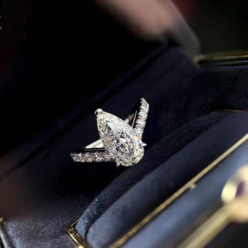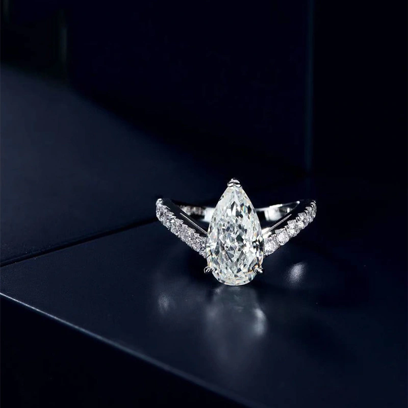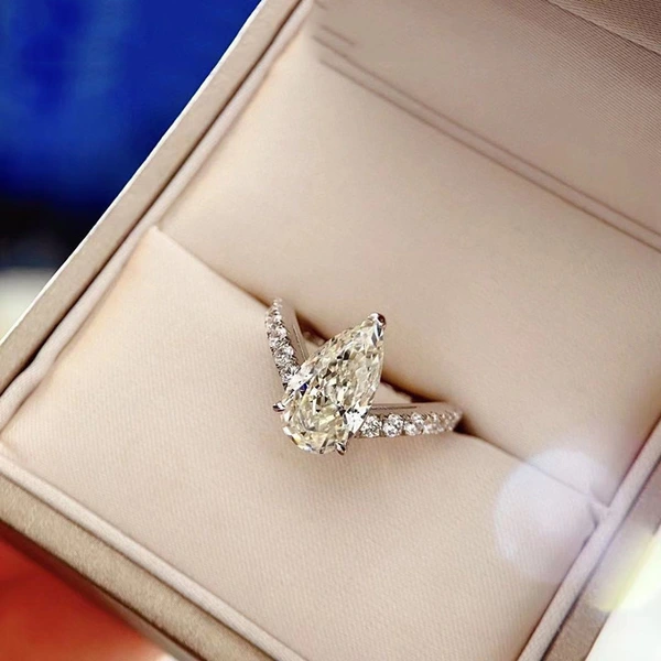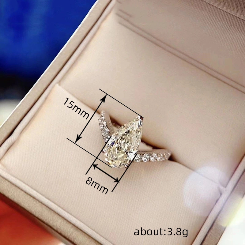تصميم شياو هونغشو نيتش، خاتم معدني لامع على شكل دمعة من الزركون على شكل كمثرى، مصدر الشركة المصنعة