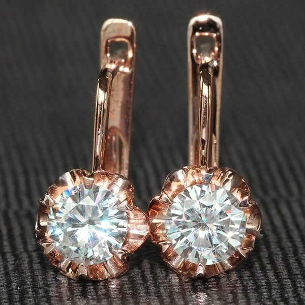 توريد حصري لأقراط نسائية هندسية أنيقة ورائعة مرصعة بالزركون وأقراط مطلية بالذهب الوردي بالجملة