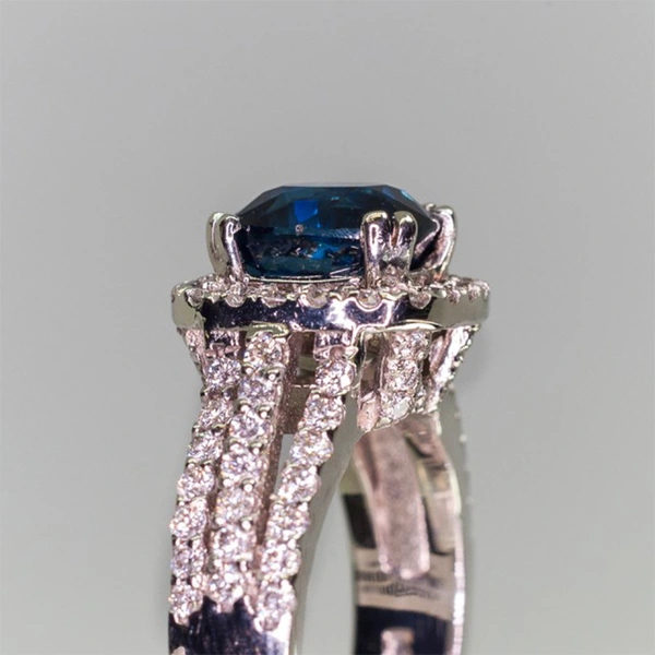 توريد خصيصا خاتم النحاس الجديد المرصع بالزركون الأزرق الأوروبي والأمريكي خاتم فاخر رائج البيع للنساء