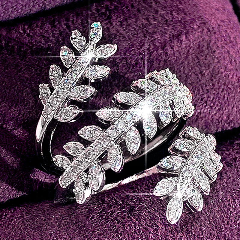 خاتم نسائي مفتوح من مجلة رويلي، خاتم من الذهب الأبيض مطلي بالنحاس ومرصع بالزركون، مصنوع من الألماس بالكامل، بتصميم أذن قمح فاخرة