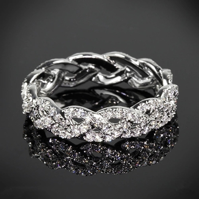 خاتم فاخر للجنسين بثلاثة صفوف من الماس وتطعيمات الزركون، رمز للمكانة الاجتماعية لخواتم الرجال الراقية