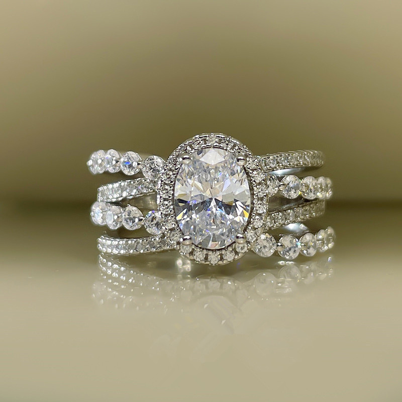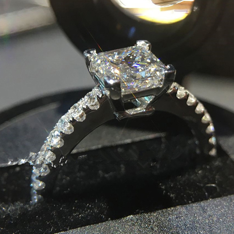 خاتم خطوبة من الألماس المقلد بأربعة مخالب من أوروبا وأمريكا الأكثر مبيعًا، مجوهرات هندسية فاخرة