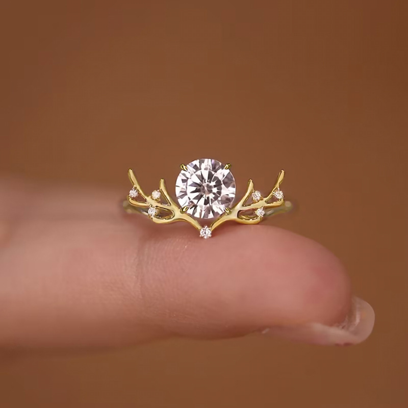 خاتم رائع مرصع بالزركون على شكل قرن الغزال للنساء خاتم عصري جديد لعيد الميلاد للنساء أقراط أنيقة خفيفة الوزن وفخمة