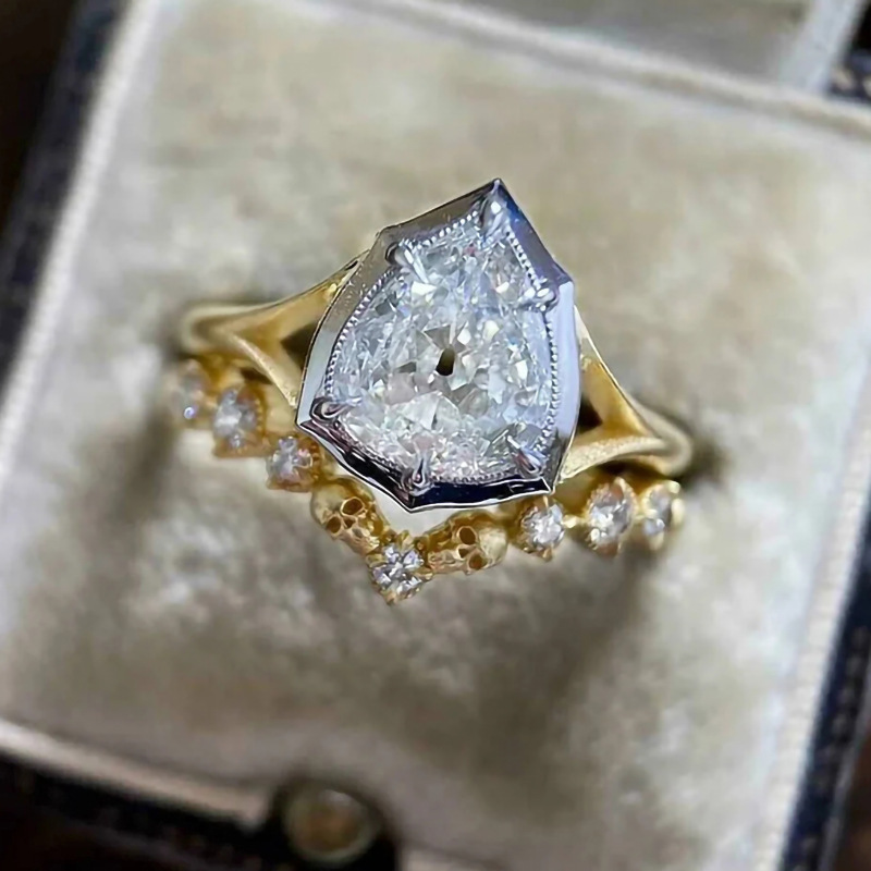 خاتم قطرة الماء الجديد الأنيق خاتم الخطوبة الزفاف عالي الجودة تصميم أنثوي مرصع بمجموعتين من الخواتم