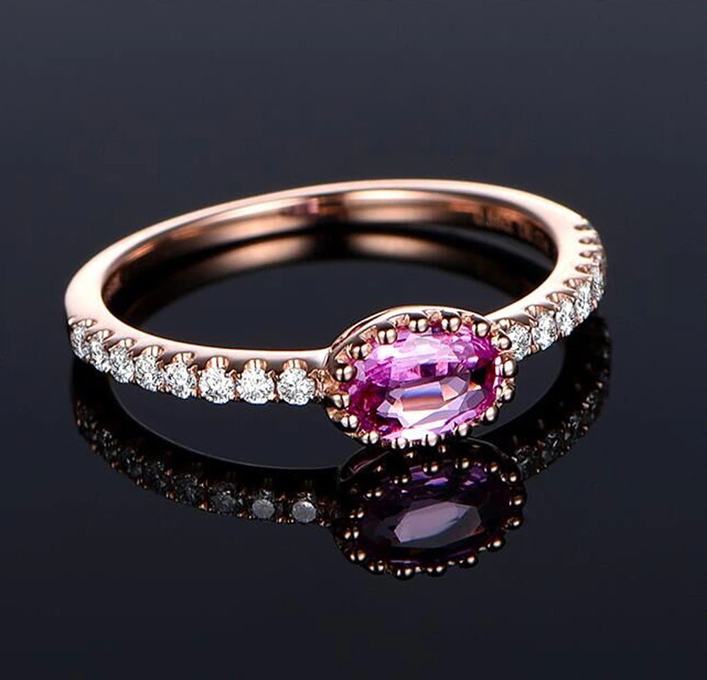 خاتم نسائي رائع من الزركون البيضاوي الوردي الأكثر مبيعًا خاتم إصبع السبابة اللطيف للفتيات مجوهرات متعددة الاستخدامات