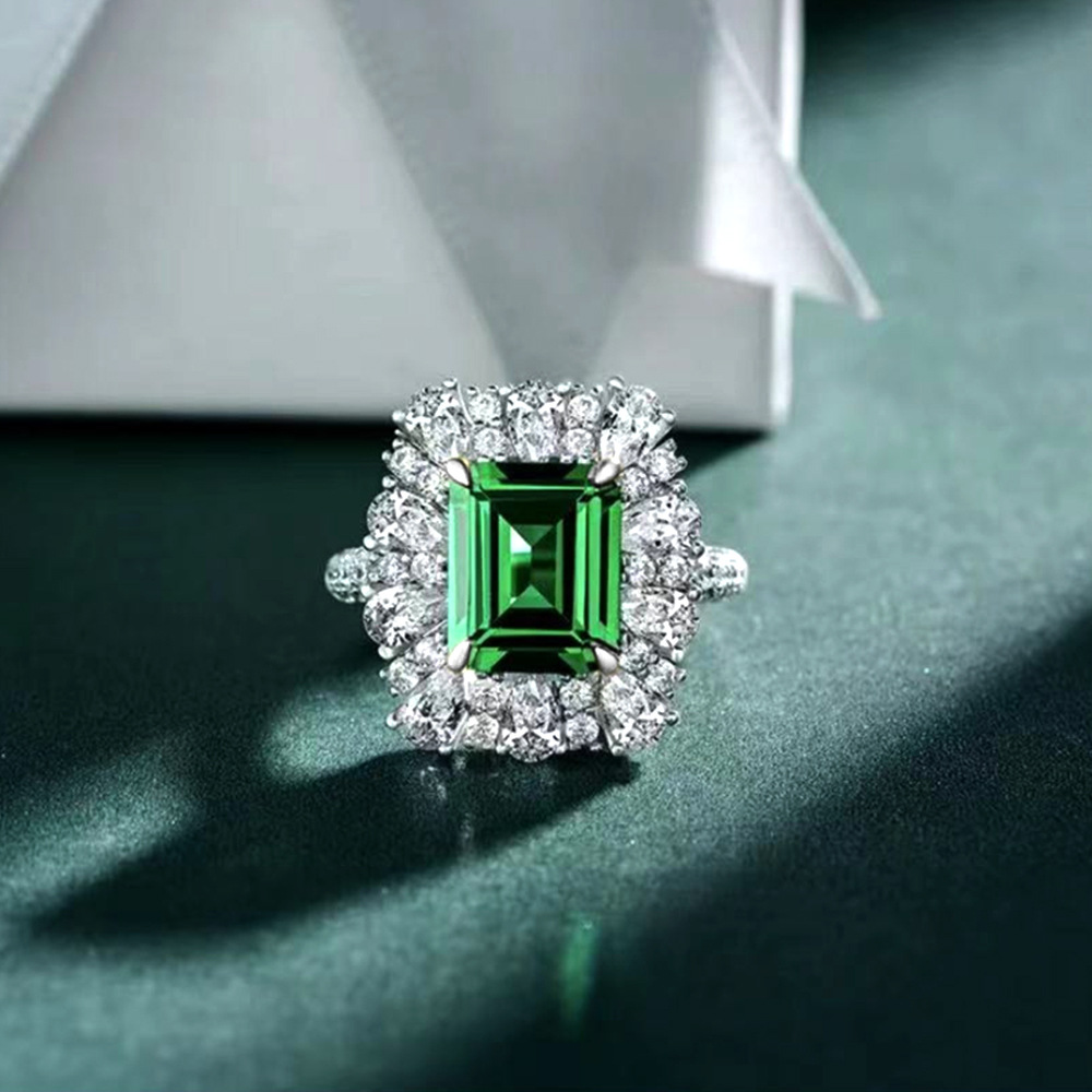 خاتم ألماس كامل مبهر من الزمرد الأخضر على شكل طاووس مطلي بالذهب الأبيض مرصع بأحجار الزركون خاتم خفيف فاخر مجوهرات يدوية رائجة البيع