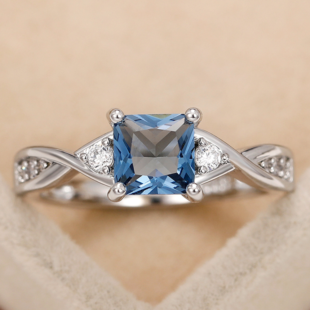 خاتم توباز أزرق مربع محاكاة مزاج جديد للنساء شبكة البث المباشر للمشاهير مجوهرات يدوية من الزركون الأكثر مبيعًا