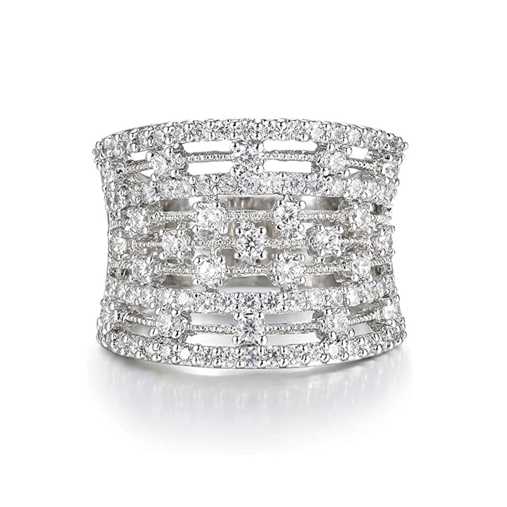 محطة مستقلة جديدة لوحة نحاسية كاملة مطعمة الزركون خاتم مجوف التجارة الإلكترونية الأوروبية والأمريكية خاتم الرجال والنساء بالجملة