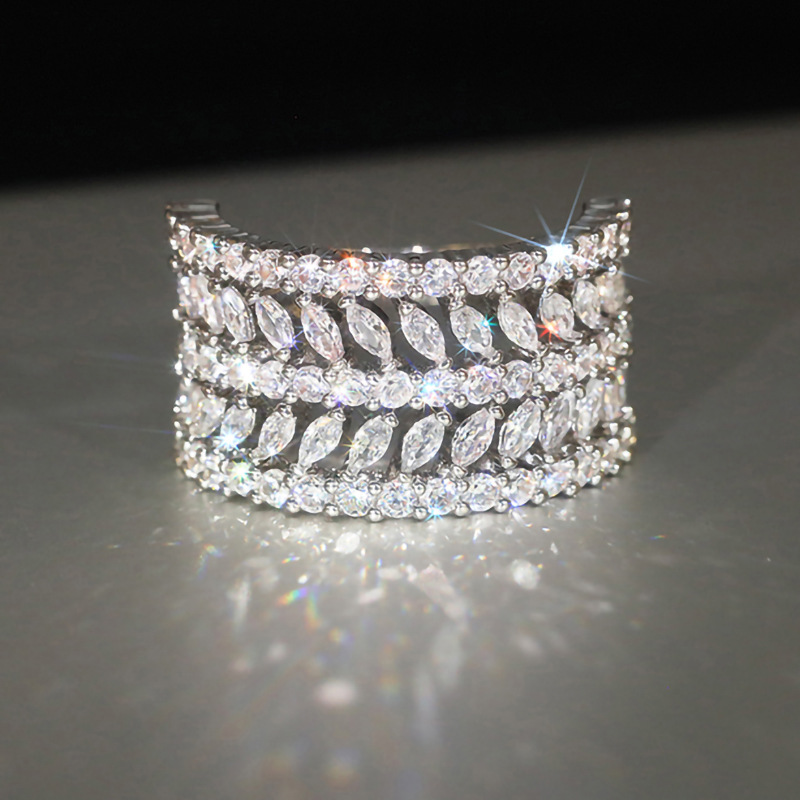 خاتم ألماس كامل للنساء، خاتم لامع ورائع ومبالغ فيه، إكسسوارات متناسقة لافتة للنظر
