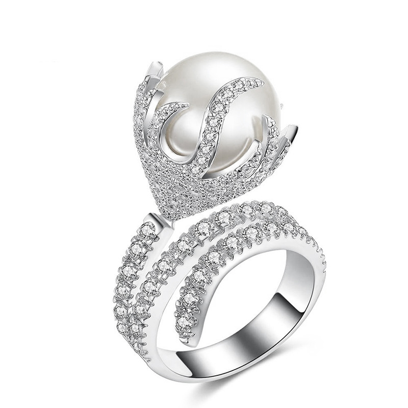خاتم مزاج فاخر خفيف للسيدات الملكيات خاتم ألماس لؤلؤي مبالغ فيه بتصميم أنيق مجوهرات