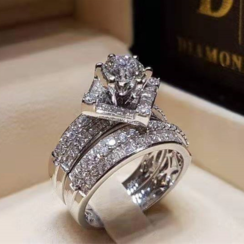 مجموعة من قطعتين من خواتم الزركون البسيطة، إكسسوارات يومية متطابقة عصرية، منتجات شائعة وأكثر مبيعًا في أوروبا والولايات المتحدة
