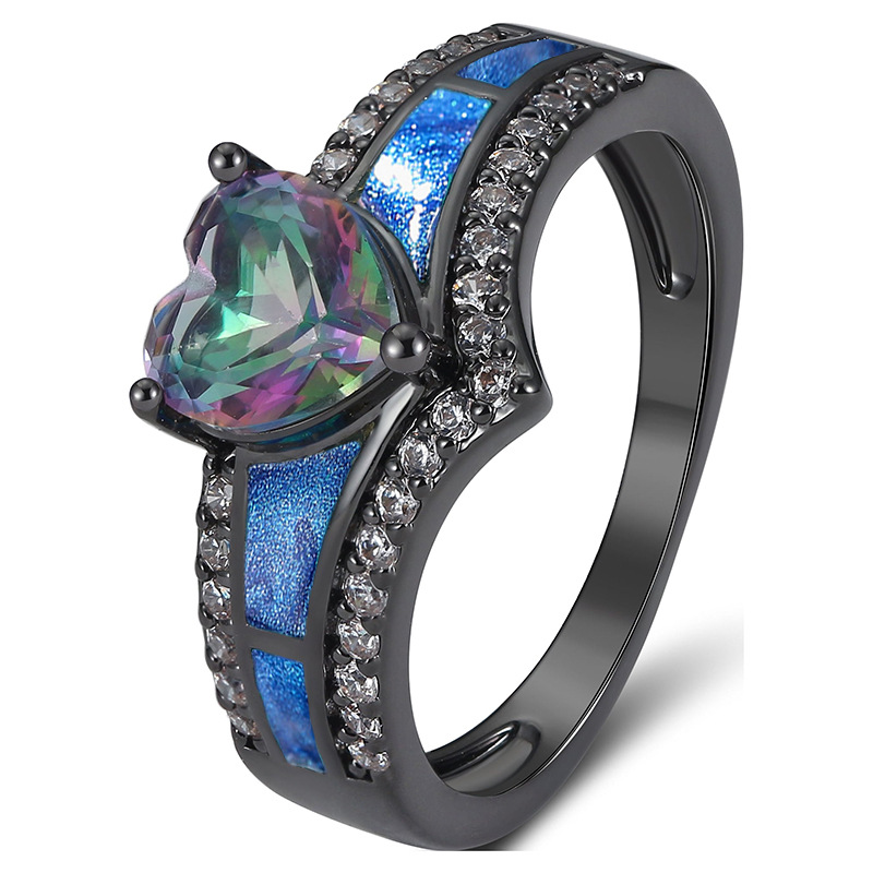 خاتم حب ملون من المعدن برسومات زيتية، خاتم باروكي داكن رائع، مجوهرات شخصية مميزة