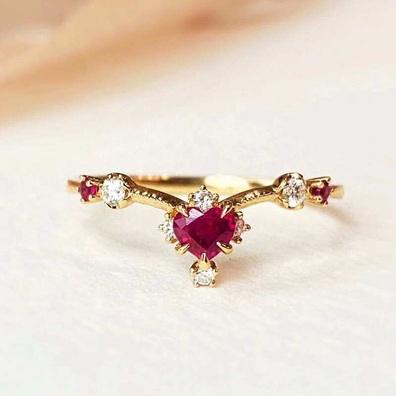 خاتم جديد مرصع بالجواهر للنساء، تصميم خاتم زهرة فرنسية حلوة، خاتم أميرة على شكل قلب عالي الجودة