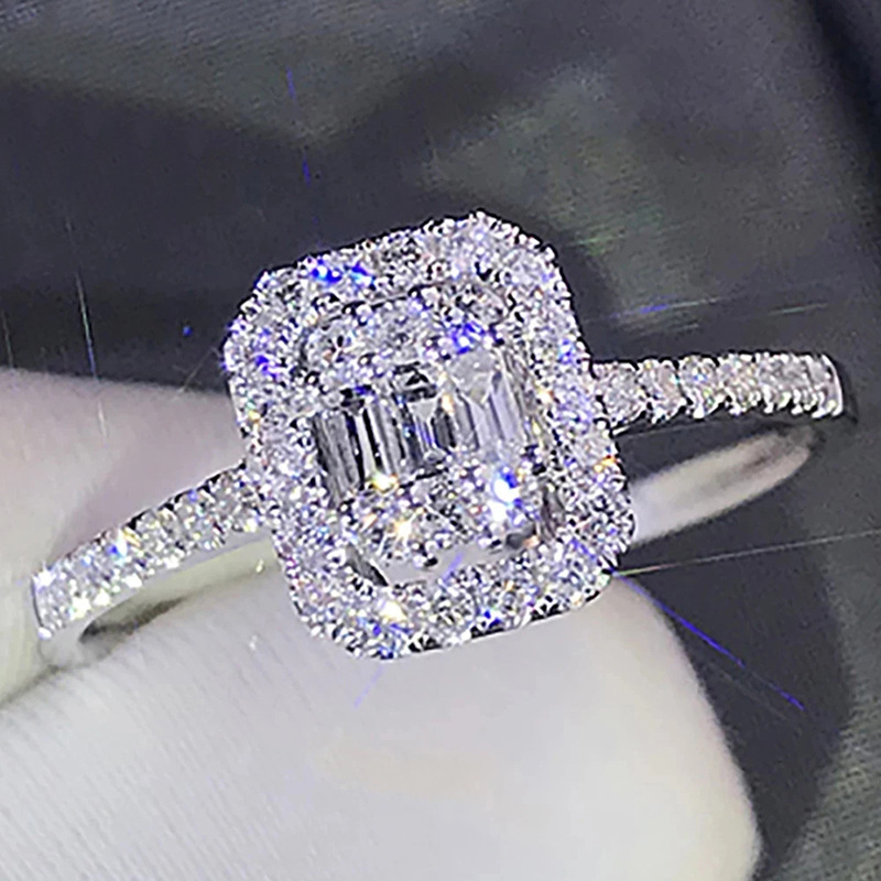 خاتم نسائي جديد مقلد مربع من الزركون الأكثر مبيعًا خاتم خطوبة للمشاهير الأوروبي والأمريكي للبيع بالجملة