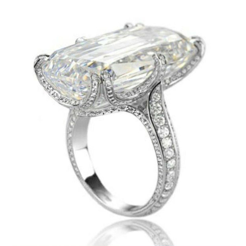 خاتم نسائي فاخر مطلي بالذهب الأبيض من الزركون الأخضر الزمردي المربع