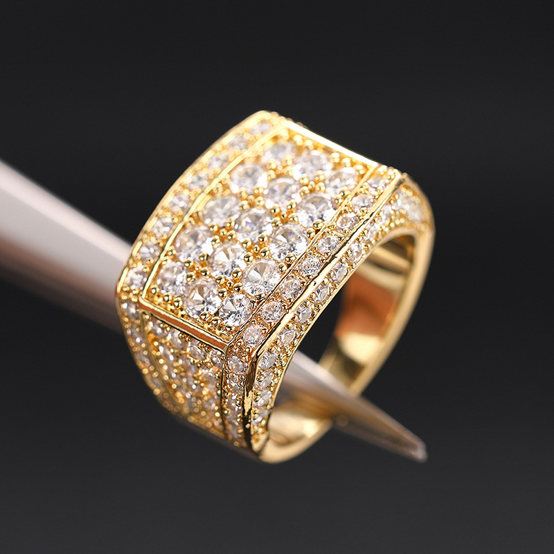 خاتم مرصع بالكامل بمزاج ثقيل عالي الجودة مجوهرات هندسية مربعة لامعة ومميزة