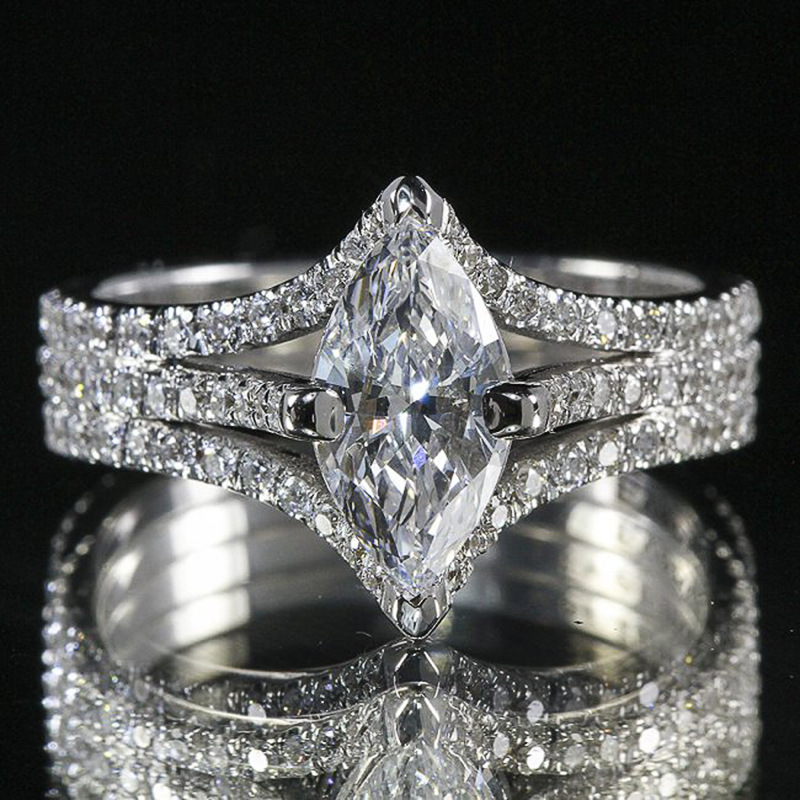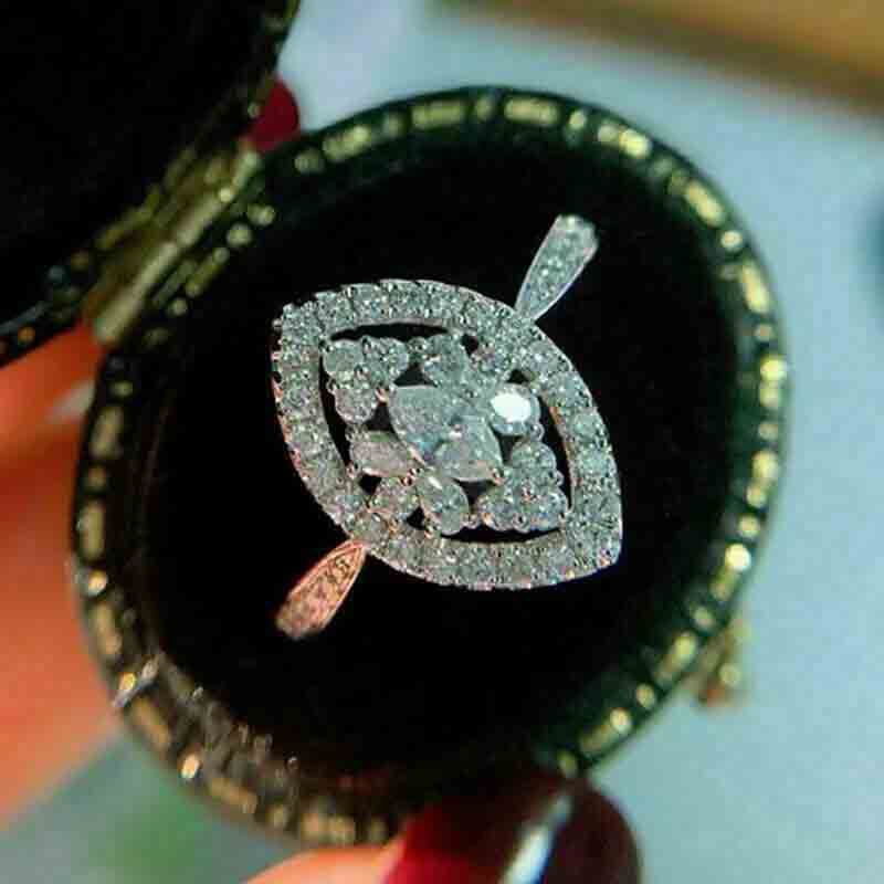 خاتم زهرة هندسية على شكل عين حصان أوروبي وأمريكي شائع للنساء مجوهرات رائعة من الزركون المتلألئ خاتم أنيق عالي الجودة