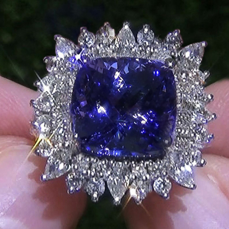 خاتم ياقوت أزرق مقلد جديد مرصع بالألماس وخاتم زركون أنيق وخفيف الوزن ومجوهرات فاخرة وإكسسوارات نسائية شائعة