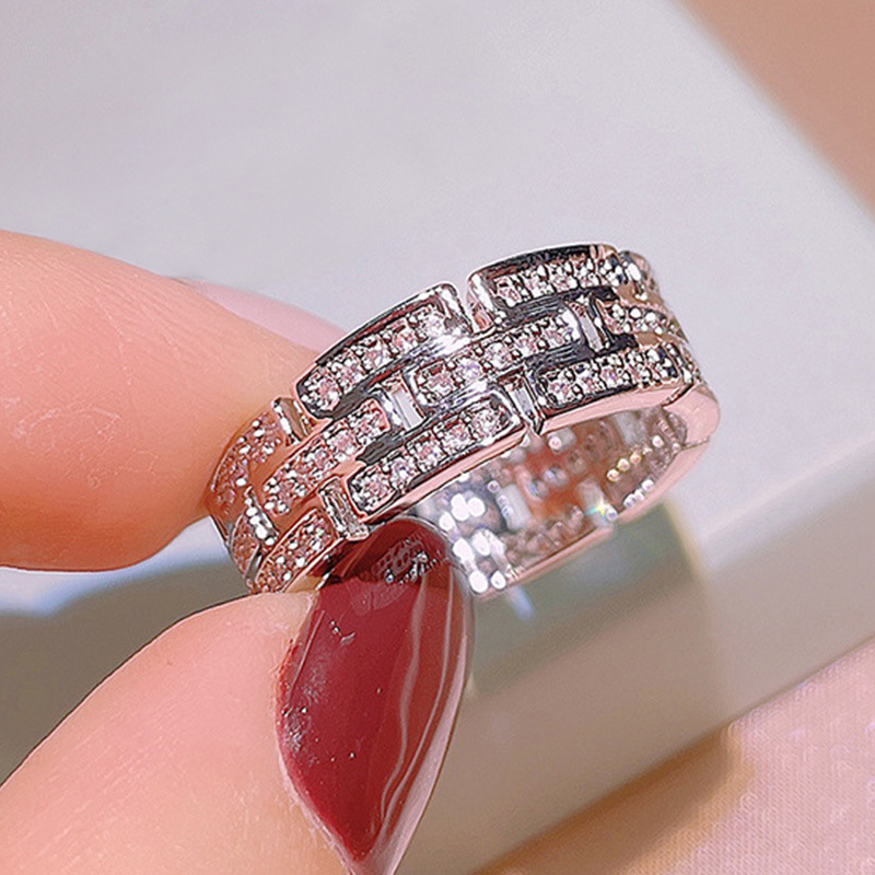 خاتم نسائي جديد من الزركون البلاتيني المطلي بالنحاس والمجوهرات الأوروبية والأمريكية مزدوج الطبقات خاتم نسائي فائق الوميض من الزركون