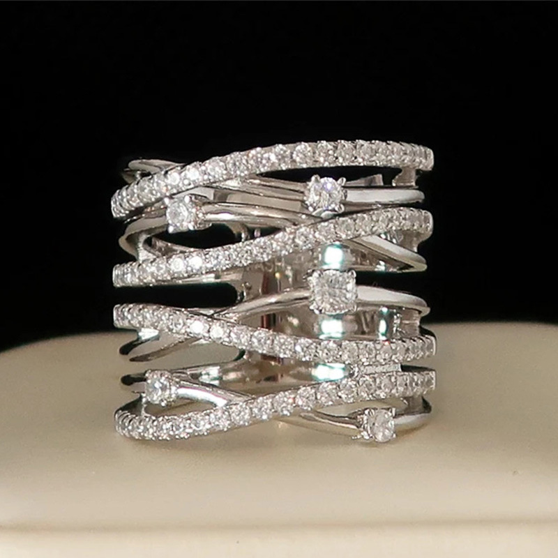 خاتم نسائي جديد لامع بخمسة صفوف، مناسب للموضة الأوروبية والأمريكية، خاتم خطوبة كبير الحجم، هدية