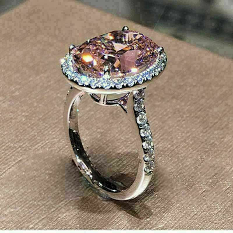 خاتم نسائي أنيق من الزركون الوردي بتصميم بيضاوي الشكل الأكثر مبيعًا في عام 2023، خاتم مويسانيتي مقلد بمزاج رائع