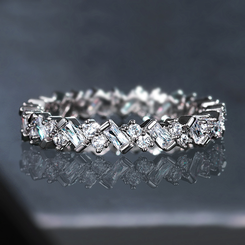 مجوهرات عصرية، اتجاه شخصي، خاتم ألماس مربع جديد للنساء، خاتم صغير دائري كامل مرصع بالنحاس من الزركون