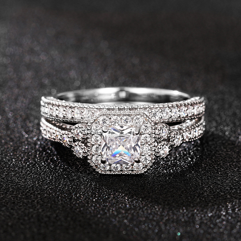 خاتم محاكاة الزركون الجديد الأوروبي والأمريكي المزدوج الطبقات 2 في 1 خاتم فلاش فائق خاتم تاج مربع الوصل الأنثوي