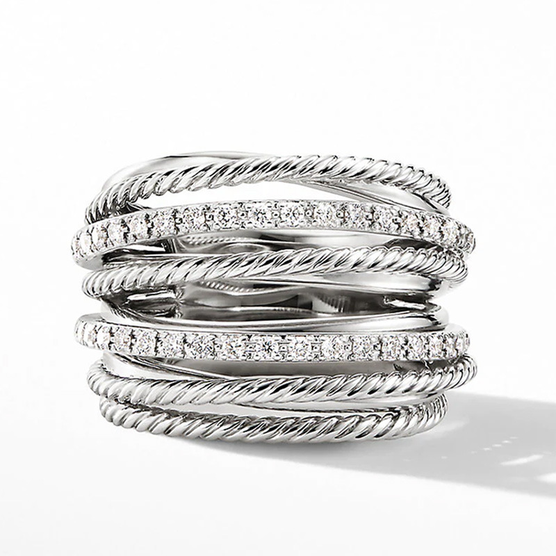 خاتم نسائي بنمط هندسي متعدد الألوان رائع للبيع بالجملة مرصع بحجر الزركون على شكل موجة